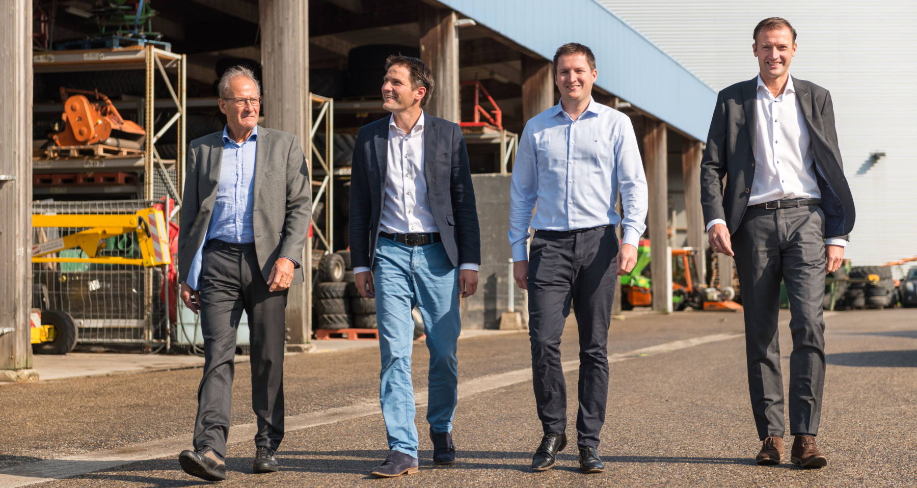 De zoons van Gert Jacobs, Jaco, Gert-Jan en Erik (v.l.n.r.) worden mede-eigenaar van Vaarkamp. Het bedrijf wordt hiermee opnieuw een familiebedrijf.